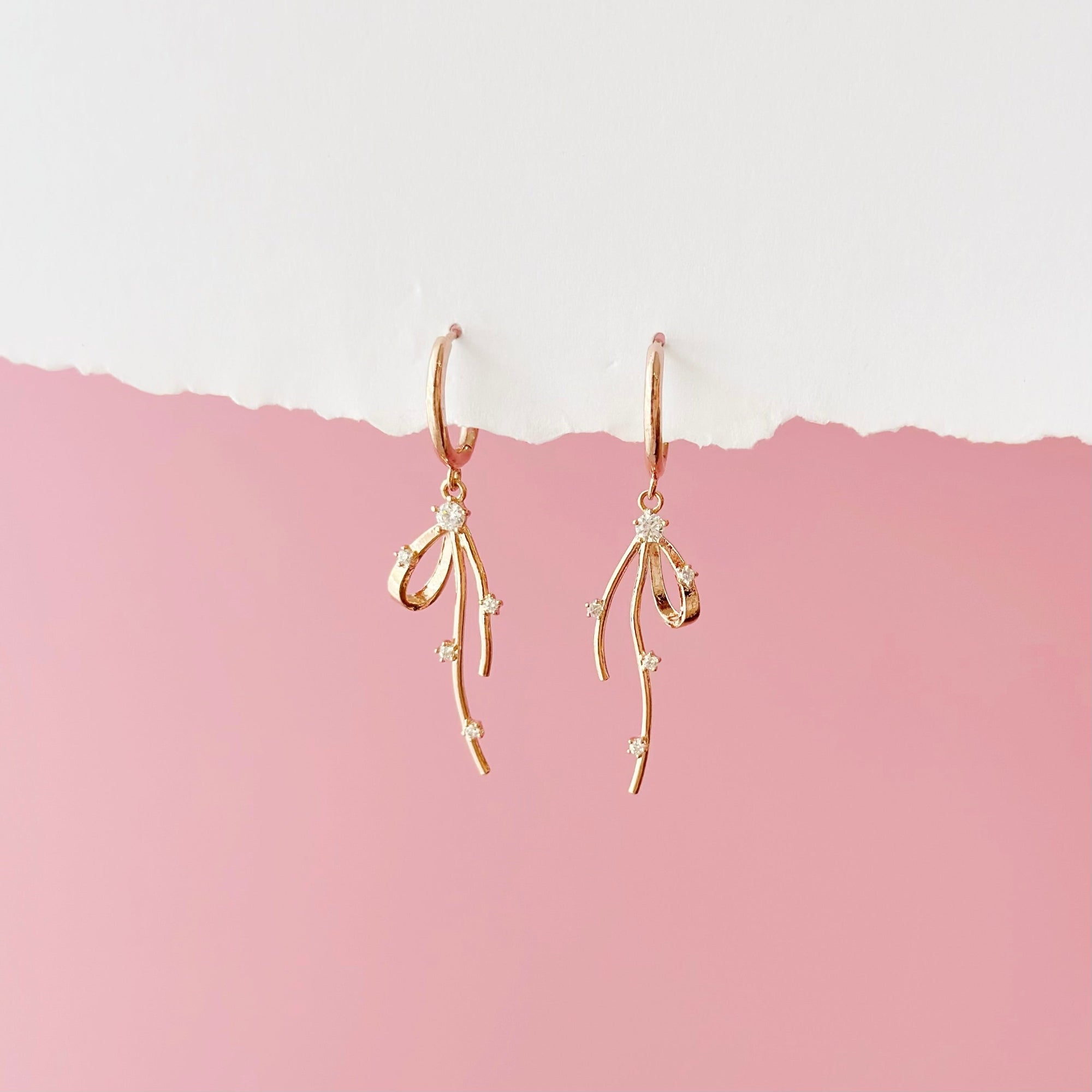 Rose Gold Promise You Ribbon Hoop Earrings