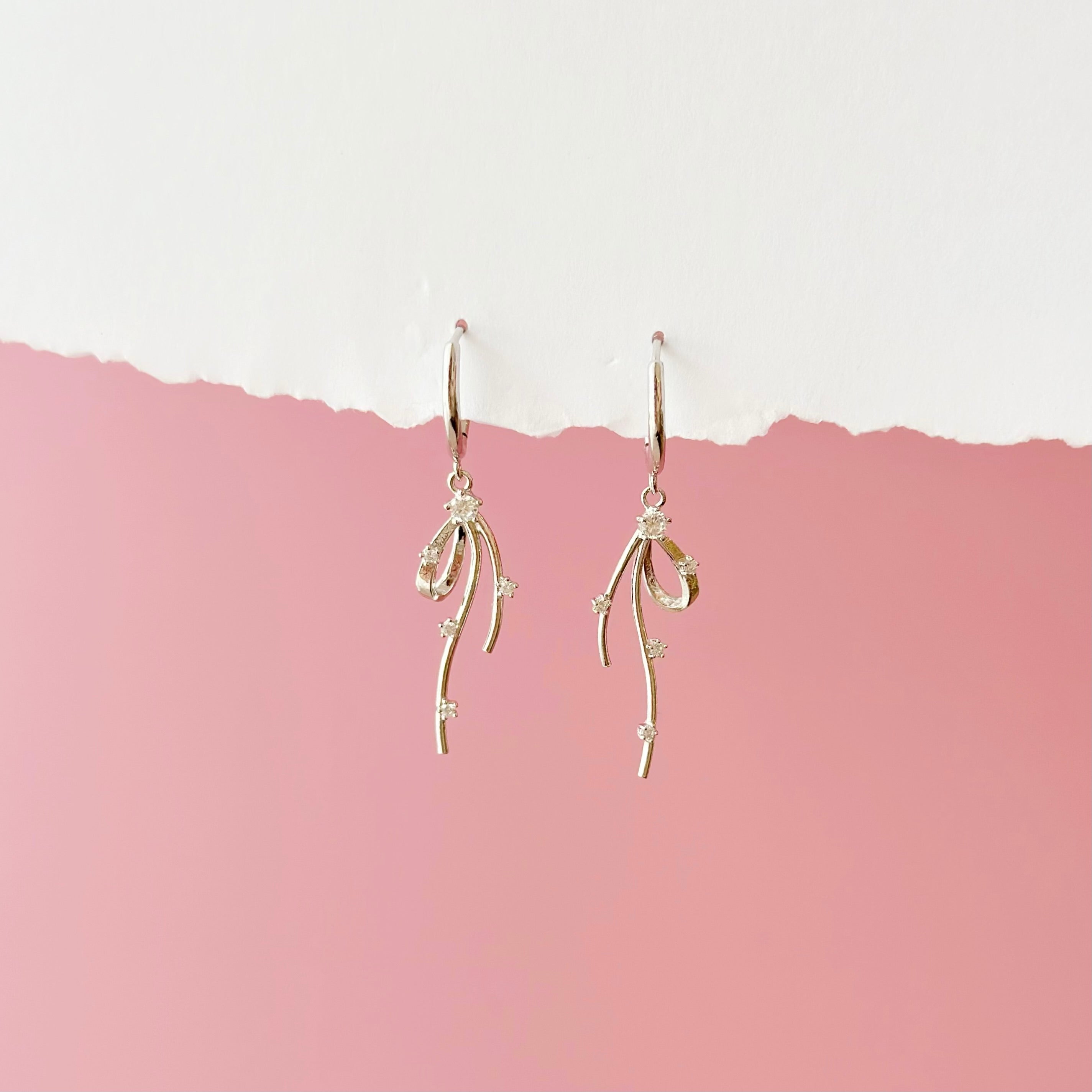 Silver Promise You Ribbon Hoop Earrings