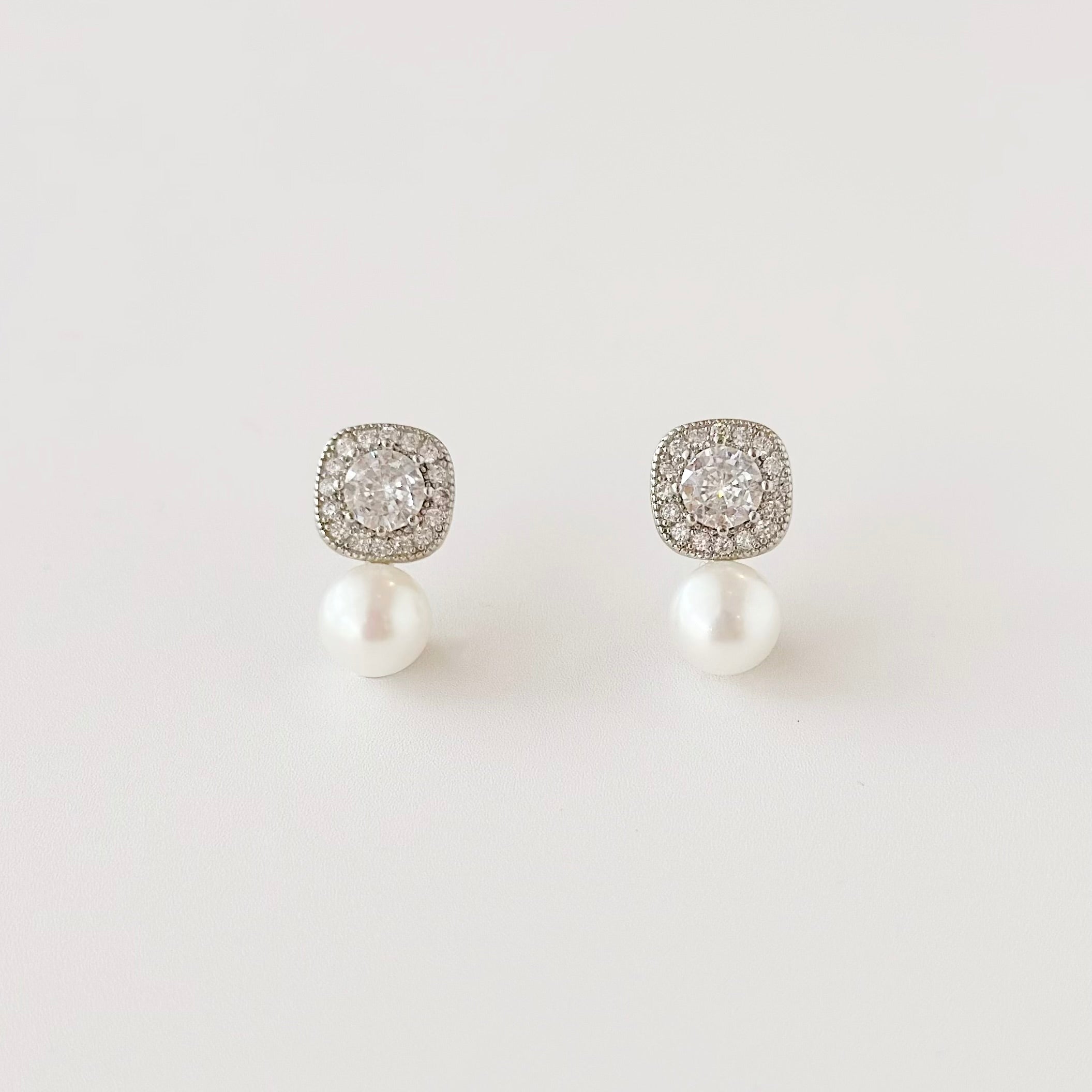 S925 Post, Freshwater Pearl, Cubic Zirconia